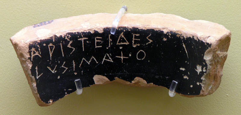 Arístides, según nos cuenta Plutarco en sus Vidas paralelas, era un político ateniense. Sometido a una consulta popular para establecer si se le condenaba al destierro —ostracismo se llamaba a eso, pues se escribía el voto en conchas marinas y trozos de cerámica—, un ciego, que ignoraba quién era, le pidió que anotara por él su propio nombre. “¿Que te ha hecho de malo?”, preguntó Arístides mientras lo hacía. “Nada —respondió el ciego—. Pero estoy harto de oír decir que es una persona honrada”.